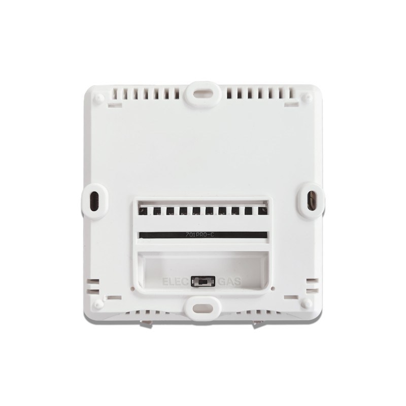 El modelo 701PRO admite 1 etapa de calor / 1 de frío (1C/1C), lo que lo hace ideal para sistemas convencionales de calefacción y refrigeración. Alimentado por 2 pilas alcalinas AA o una fuente de alimentación de clase II NEC de 18~30 VCA a 50/60 Hz, ofrece opciones de instalación flexibles. Sus dimensiones físicas compactas de 3,78" de ancho x 3,93" de alto x 0,98" de profundidad se adaptan perfectamente a cualquier entorno de habitación.