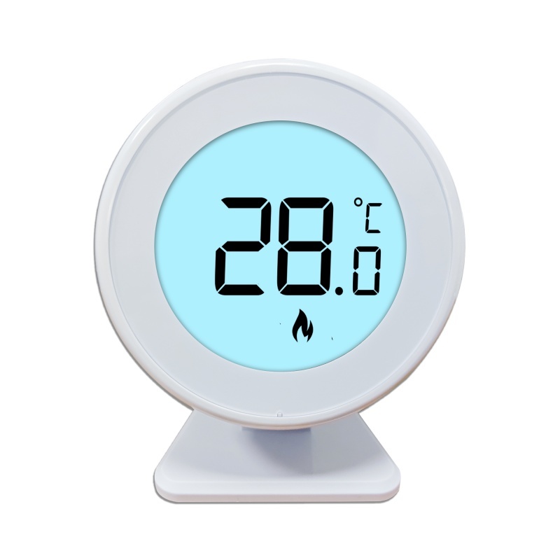 Una de las características clave de este termostato de ambiente digital es su diseño de sala de control centrado en el usuario. La elegante forma redonda no solo añade una estética contemporánea a cualquier pared, sino que también garantiza la facilidad de uso y la legibilidad. La interfaz intuitiva permite a los usuarios configurar y ajustar sin esfuerzo los ajustes de temperatura, optimizando el confort y la eficiencia energética. La funcionalidad inalámbrica elimina la necesidad de cableado complejo, simplificando la instalación y reduciendo el tiempo de configuración. Como dispositivo montado en la pared, está estratégicamente posicionado para controlar con precisión la temperatura ambiente, lo que le permite mantener niveles de calefacción constantes en todo el espacio.