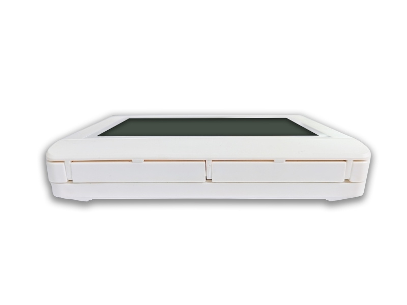 Cada termostato electrónico de ambiente se embala cuidadosamente en una caja resistente para garantizar la protección durante el transporte. El embalaje incluye un inserto de espuma moldeada para sujetar de forma segura el termostato y evitar cualquier movimiento o daño.